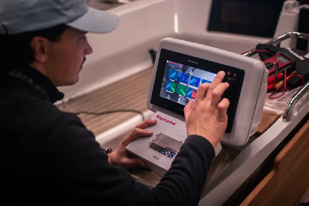 L’électronique est au cœur du confort et de la sécurité à bord. Notre équipe installe, entretient et optimise l’ensemble des systèmes embarqués sur votre bateau. Pour améliorer votre confort à bord, nous proposons également l’installation de réfrigérateurs, chauffage et climatisation, winch et enrouleurs électriques et panneaux solaires pour une énergie autonome et durable.